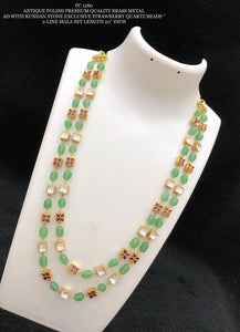 Ambika , Elegant Premium Brass Metal American Diamond with Kundan Strawberry Quartz Beads 2 Line Mala Length 20 inch-SHAKI001