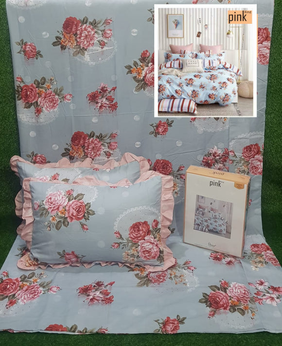 HOMY-PINK DOUBLE BED SHEET SET WITH FRILLS -(3 PCS. SET)-PREET001A