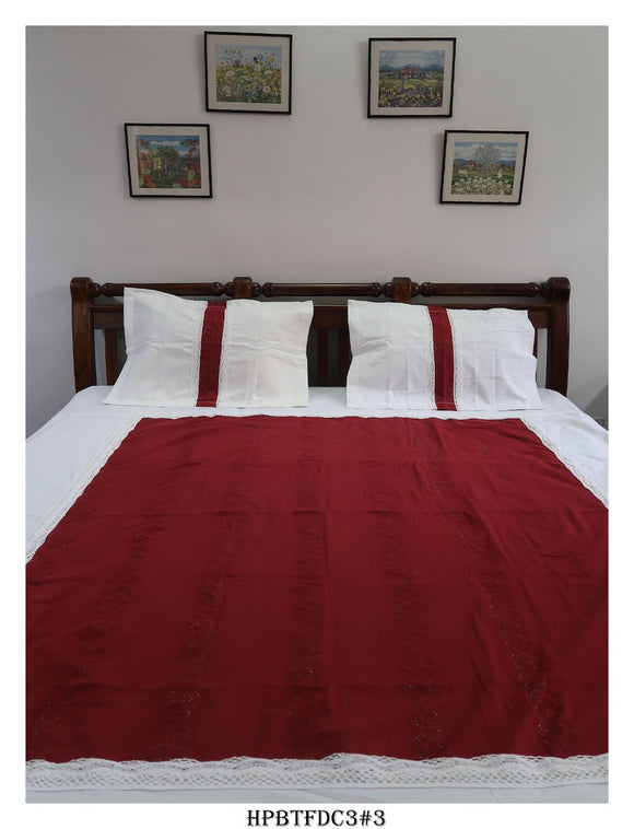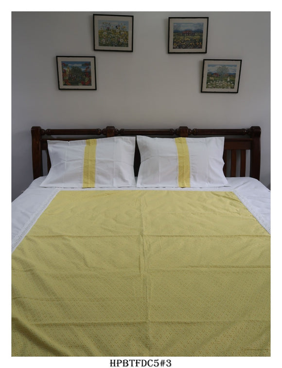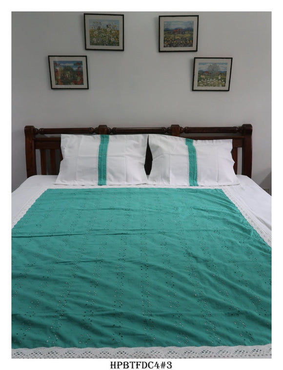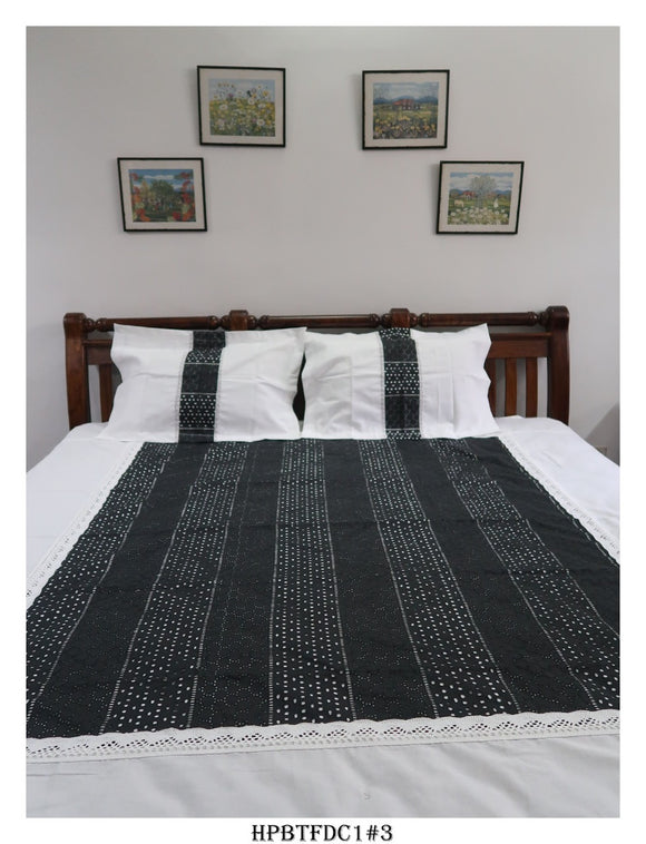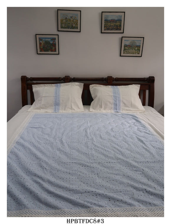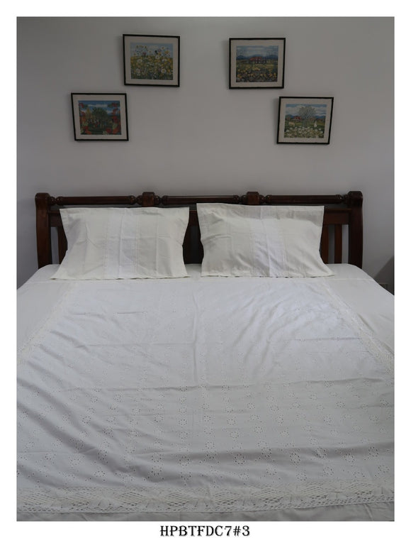 Casement Cotton Bedsheet with Hakkoba Centre Patch and Crochet Lace with Two Pillow Covers -KIA001AIBW