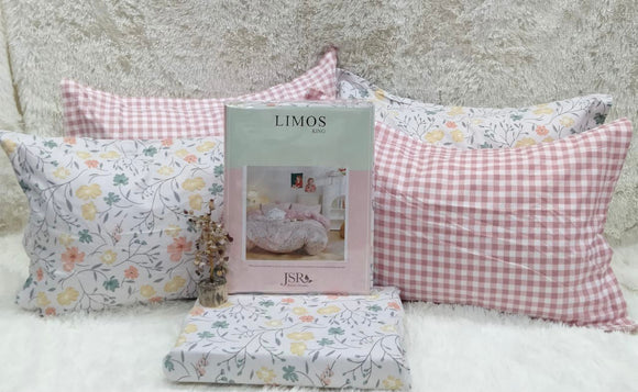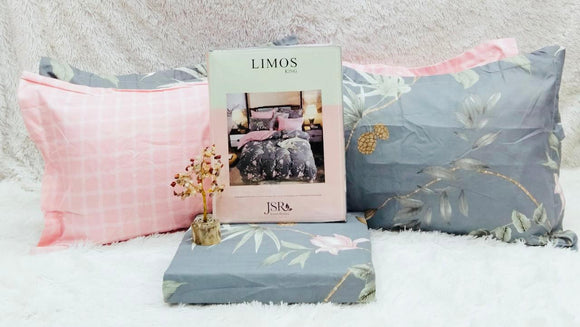 PINK AND GREY LIMOS KING SIZE BEDSHEET WITH 4 PILLOW COVERS-STYLE001PG
