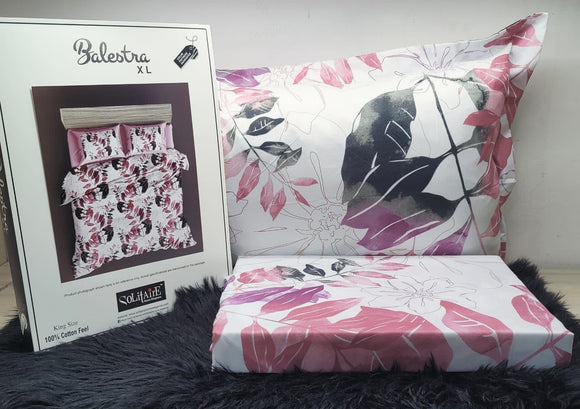 PINK LEAVES , Balestra XXL King Size Bed Sheet With 2 Pillow Covers-PANIPBSS001PL
