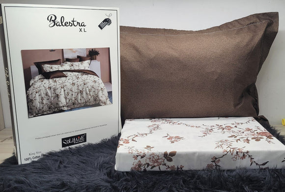 BROWN FLORAL , Balestra XXL King Size Bed Sheet With 2 Pillow Covers-PANIPBSS001WBRF
