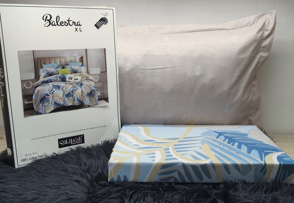 BLUE LEAVES , Balestra XXL King Size Bed Sheet With 2 Pillow Covers-PANIPBSS001BL