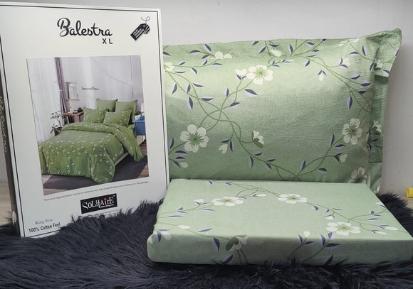 PISTA GREEN , Balestra XXL King Size Bed Sheet With 2 Pillow Covers-PANIPBSS001PG