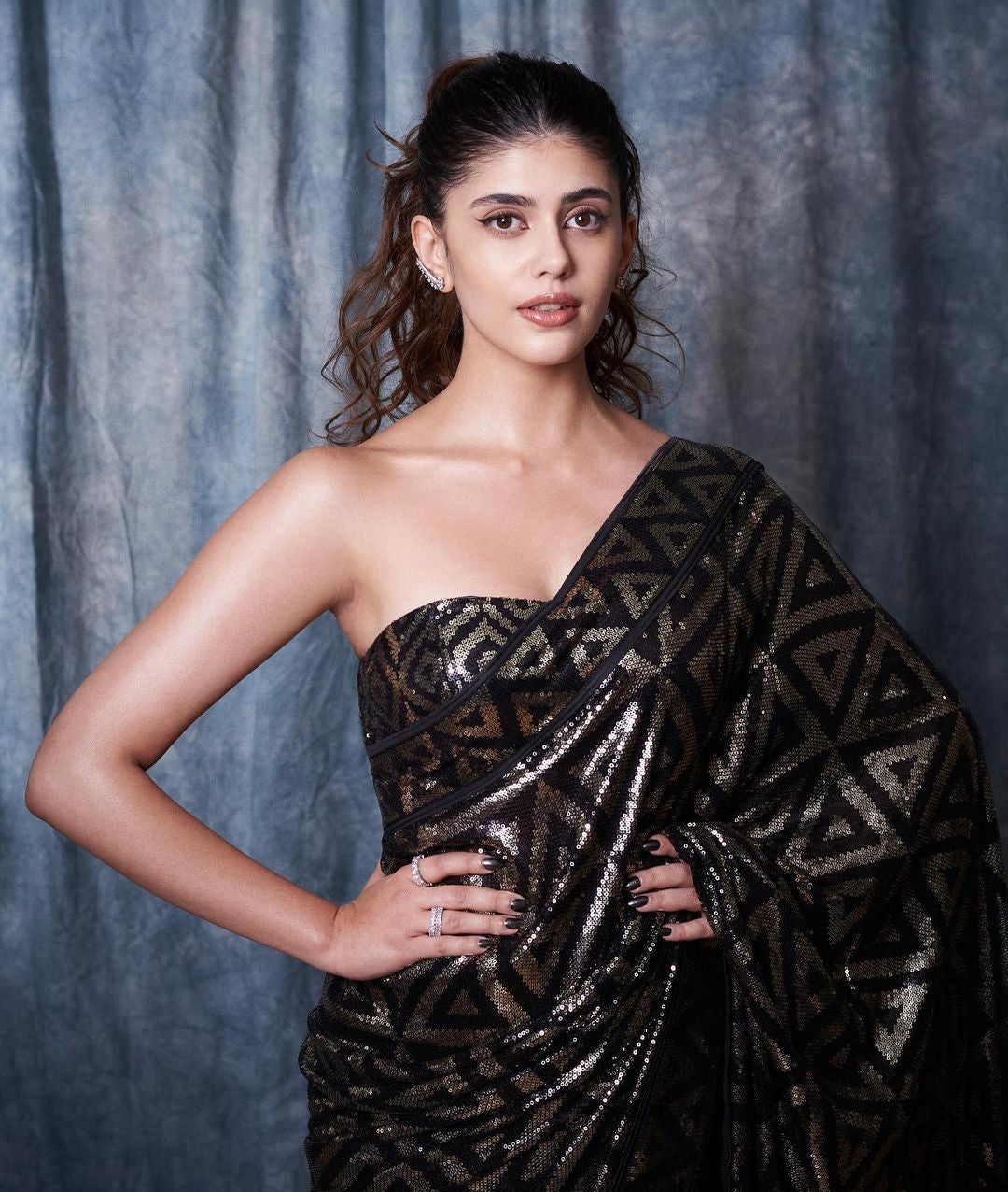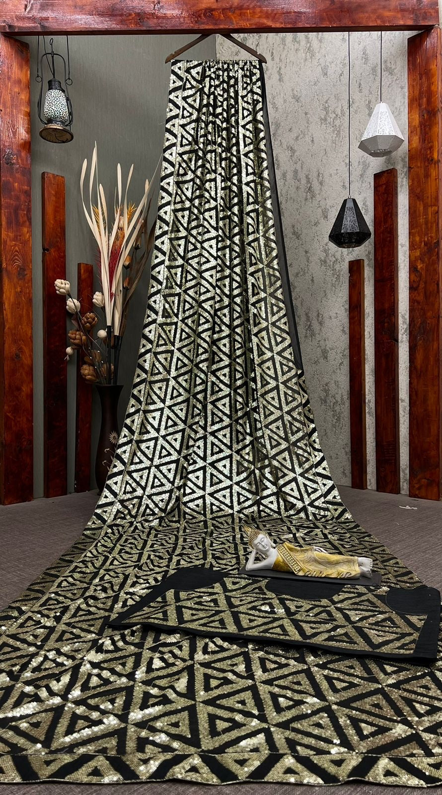 Party Wear Bollywood Replica Style Black Georgette Saree with Sequins work-SHREE001BS