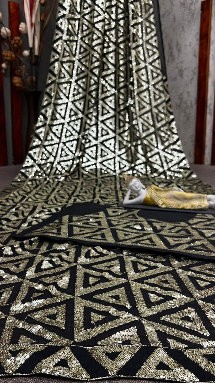 SAREE : GEORGETTE WITH Sequins embroidered work with sequins Lace Work -5.5meter