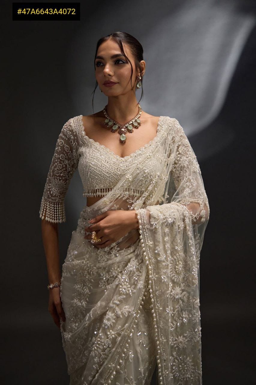 Beautiful Pearl Moti border in saree