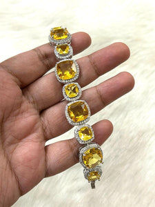 Yellow Cushion Cut Crystal Color Stone Single line Tennis Bracelet in Platinum finish for Women -SANDY001YB