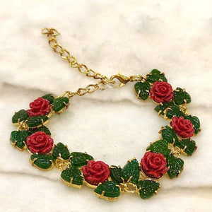 RED CORAL AND GREEN JADE GOLD FINISH BRACELET FOR WOMEN