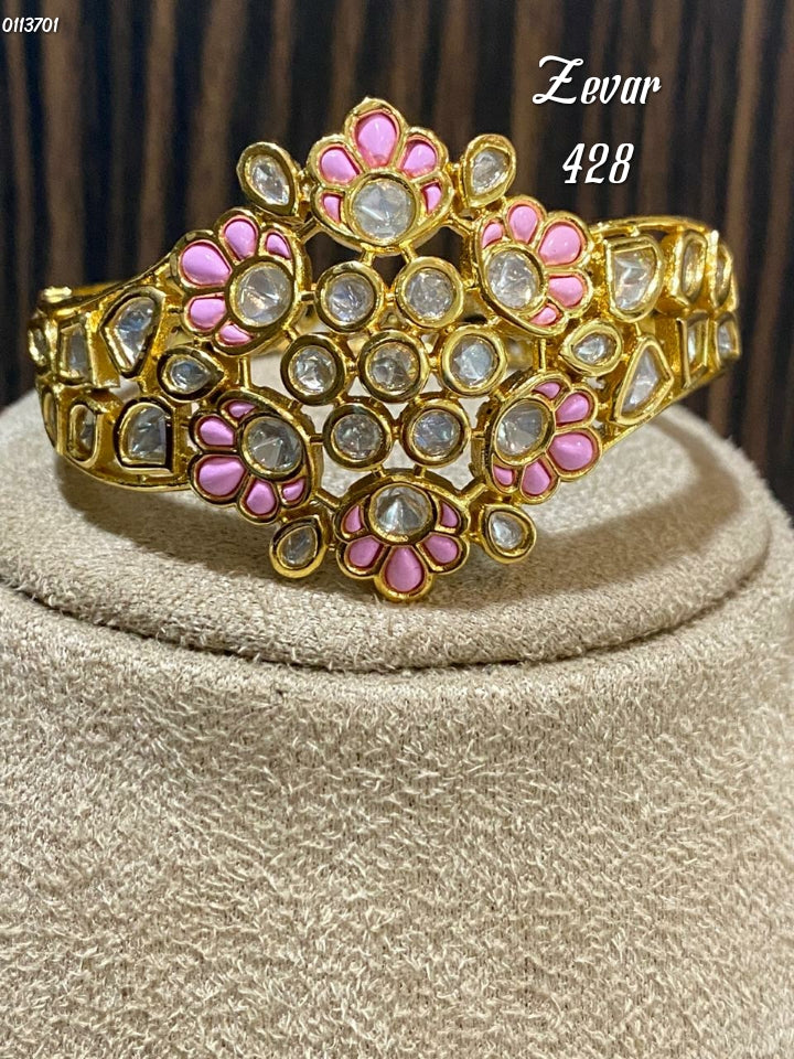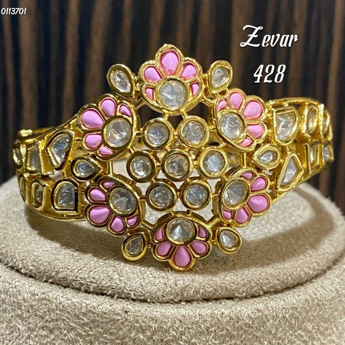ZEVAR BRIDAL BRACELET WITH PINK AND WHITE KUNDAN STONES