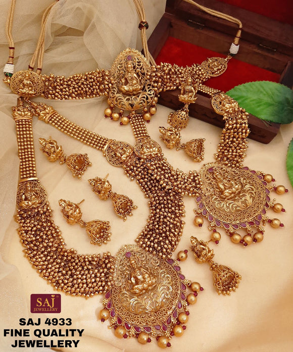 RAJESWARI, MATTE GOLD FINISH GOLDEN MAGGAM WORK JEWELLERY COMBO FOR WOMEN -SANDY001BJS
