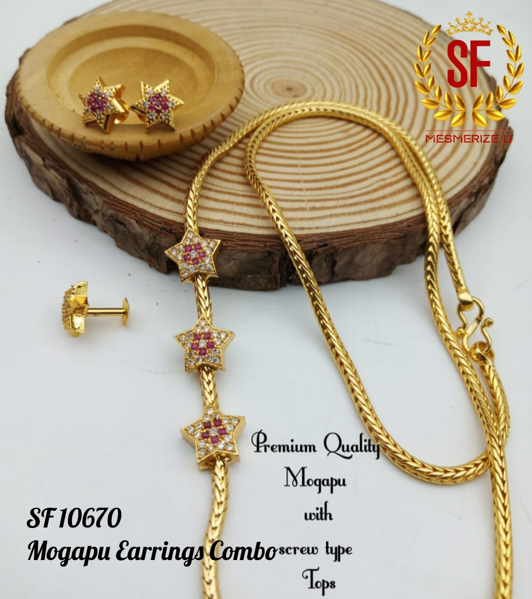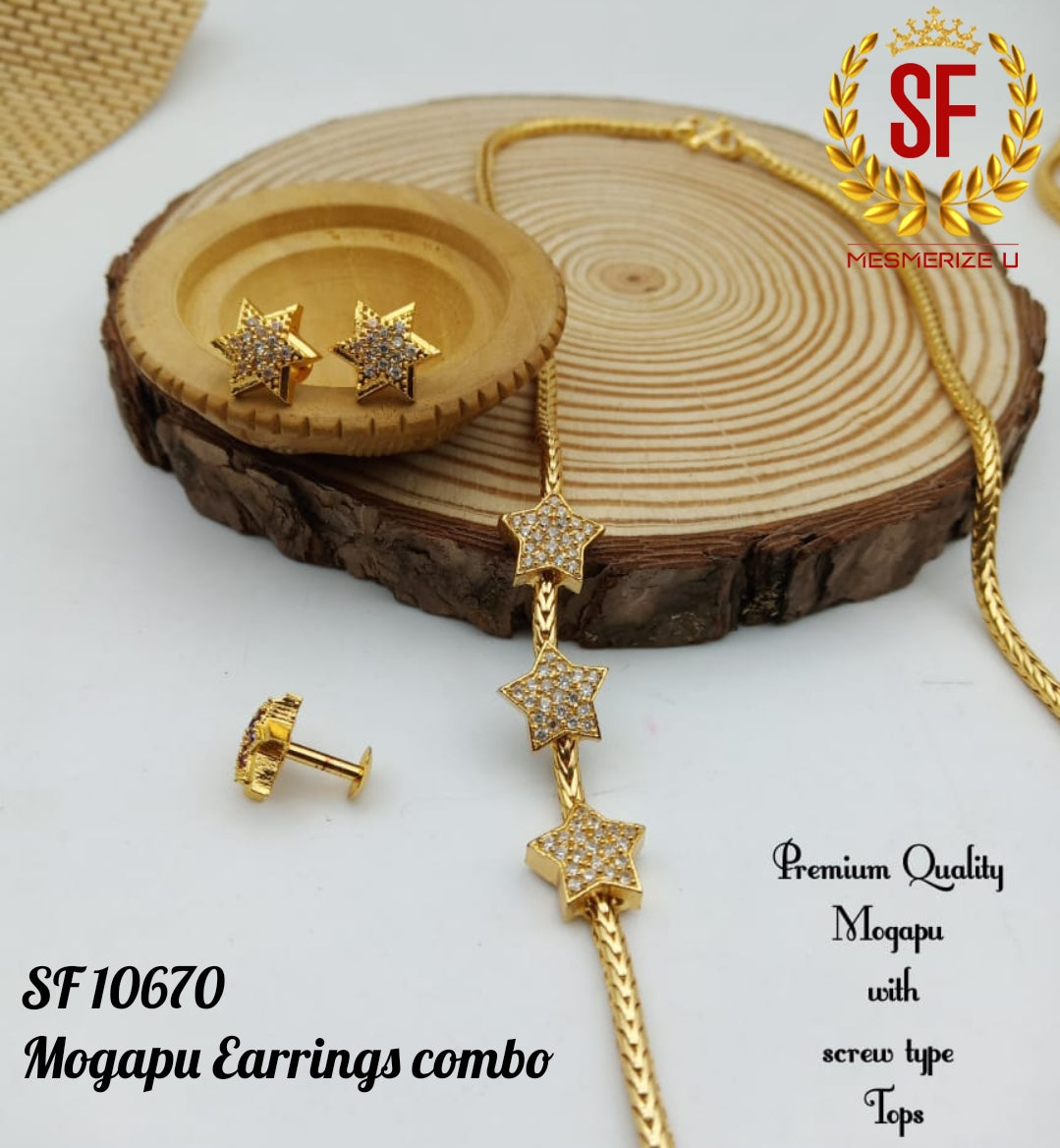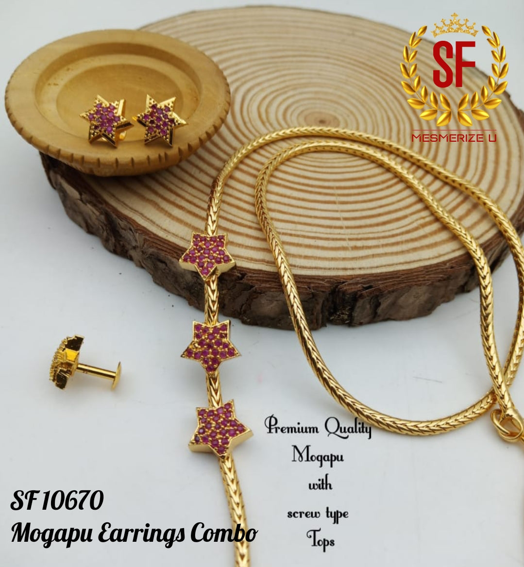 NAKSHATRA DESIGN GOLD FINISH MUGAPPU CHAIN WITH EARRINGS COMBO FOR WOMEN -ARTMC001N