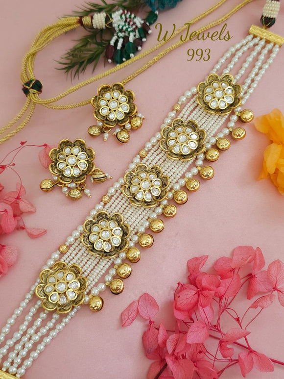 SHEHNAYI, MATTE GOLD FINISH PEARL CHOKER SET FOR WOMEN -MOE HGPC001
