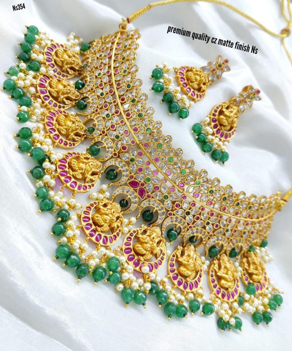 KEERTI , MATTE GOLD FINISH GANESHA DESIGNER CHOKER NECKLACE SET FOR WOMEN-SAYDKNS001