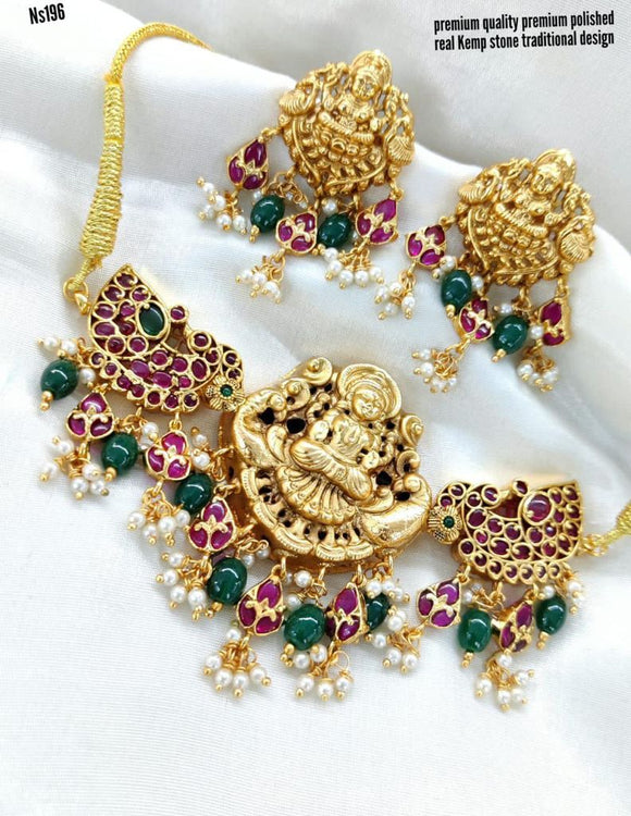 MEENAKSHI , MATTE GOLD FINISH KEMP DESIGNER CHOKER NECKLACE SET FOR WOMEN-SAYDKNS001K