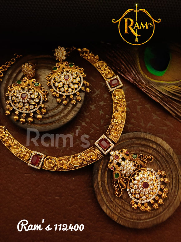 Valarmathy , elegant Matte Gold finish Choker Necklace Set for women -SHAKI001NSA (Copy)