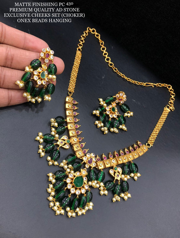 Green Mayuri , elegant Matte Gold Finish Designer Choker Necklace Set for Women -SANDY001BCB