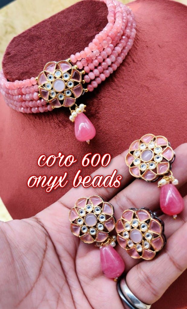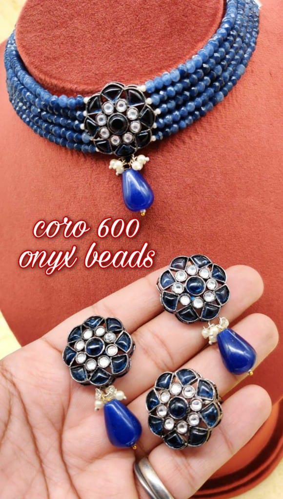 CORO,ONYX  BEAD CHOKER NECKLACE SET WITH RING FOR WOMEN -CORO001C