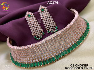 EMARALD GREEN NAKSHATRA, ROSE GOLD FINISH CHOKER NECKLACE SET FOR WOMEN -SANWARGNS001EG