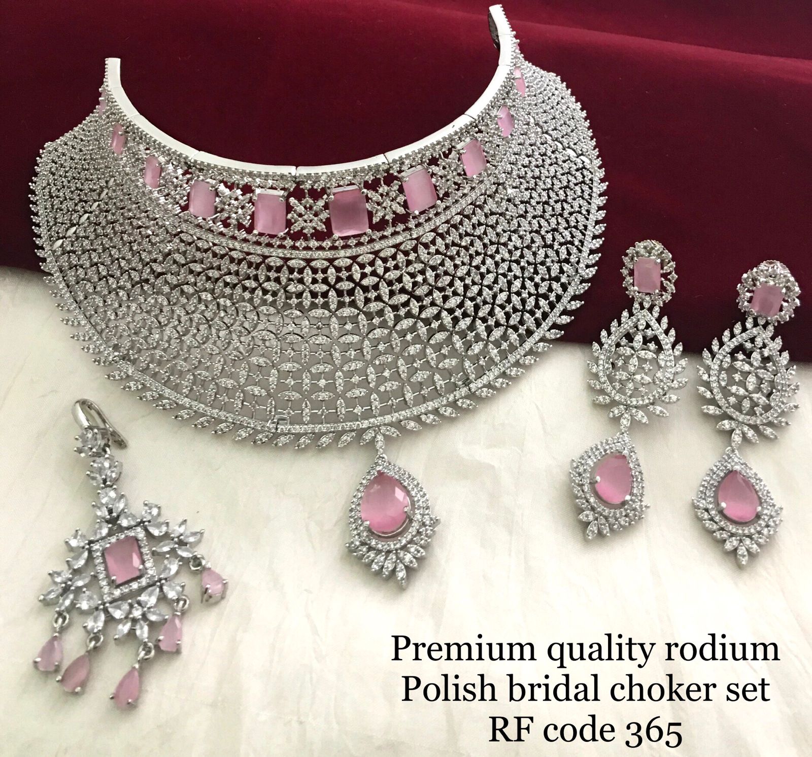 NEELAMBARI, RHODIUM FINISH HEAVY CHOKER NECKLACE WITH MAANGTIKKA FOR WOMEN-ARTCNNE001