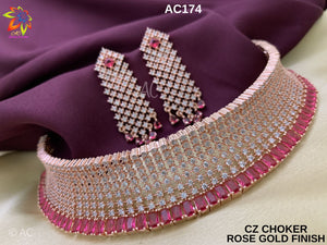 Doris , Designer Choker Necklace Set with Pink Centre stone -JAYDU001PS