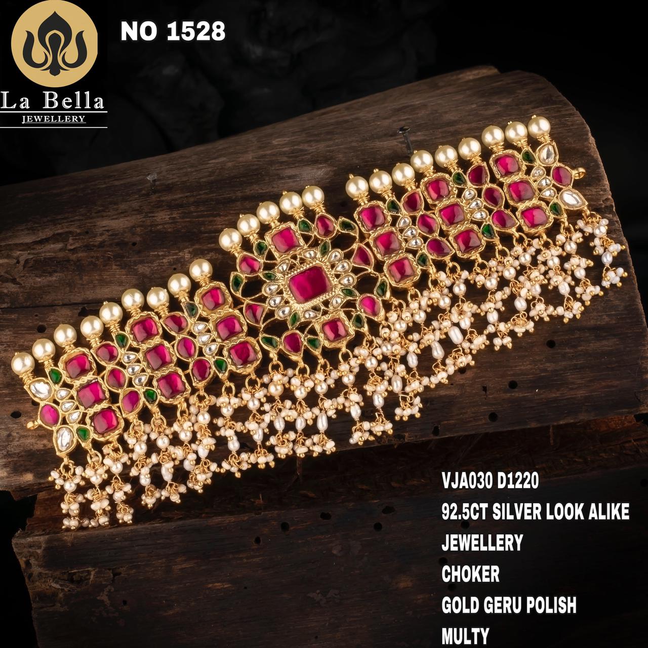 VAIDEHI , 92.5 CT SILVER LOOK ALIKE MATTE GOLD GHERU FINISH KEMP PEARL CHOKER NECKLACE SET FOR WOMEN -SAYDKNSV001