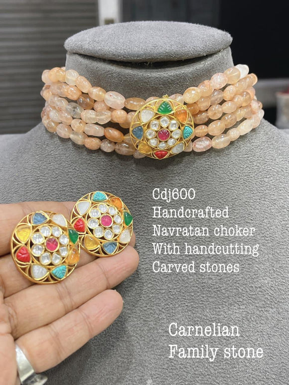 PRATIGYA, HAND CRAFTED NAVRATAN POLKI CHOKER SET WITH HAND CUTTING CARVED PRECIOUS STONES-MOECS001P
