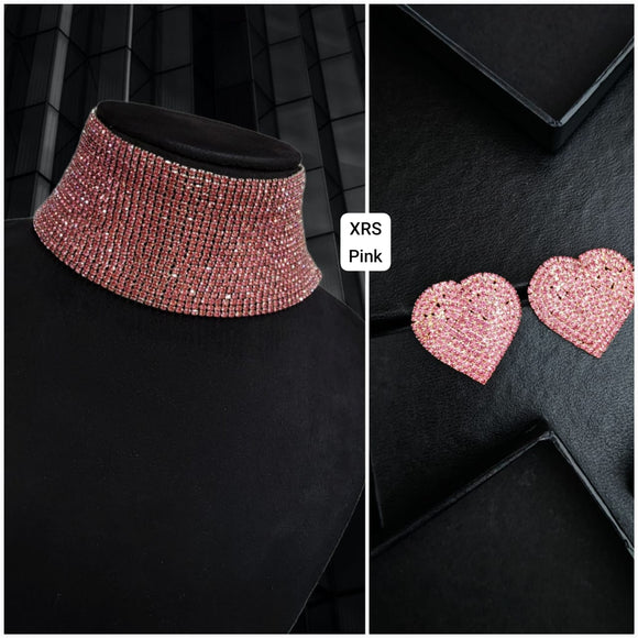 Pink Sonakshi Heart Studs and Stone Studded Broad Choker Set for Women -MG001PC