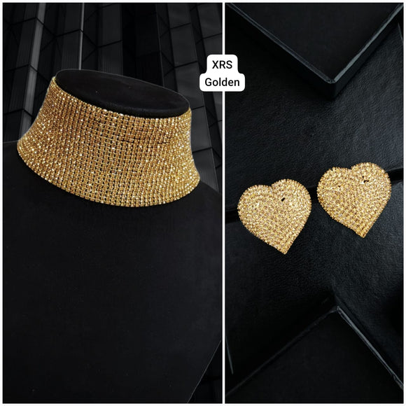 Golden Sonakshi Heart Studs and Stone Studded Broad Choker Set for Women -MG001GC