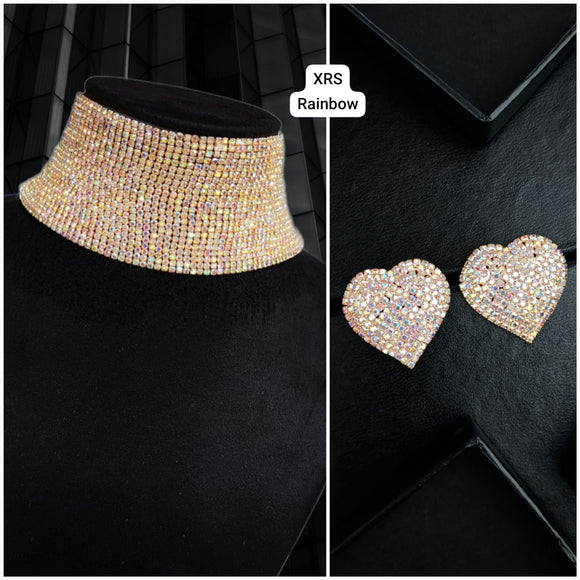 Rainbow Sonakshi Heart Studs and Stone Studded Broad Choker Set for Women -MG001RC