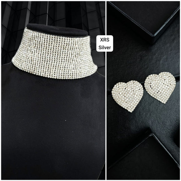 Silver Sonakshi Heart Studs and Stone Studded Broad Choker Set for Women -MG001SC