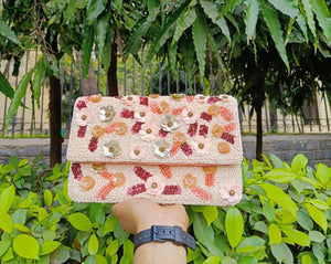 Ronica , Beautiful Bead Clutch Bag With Chain Sling For Women-PANI001CBR