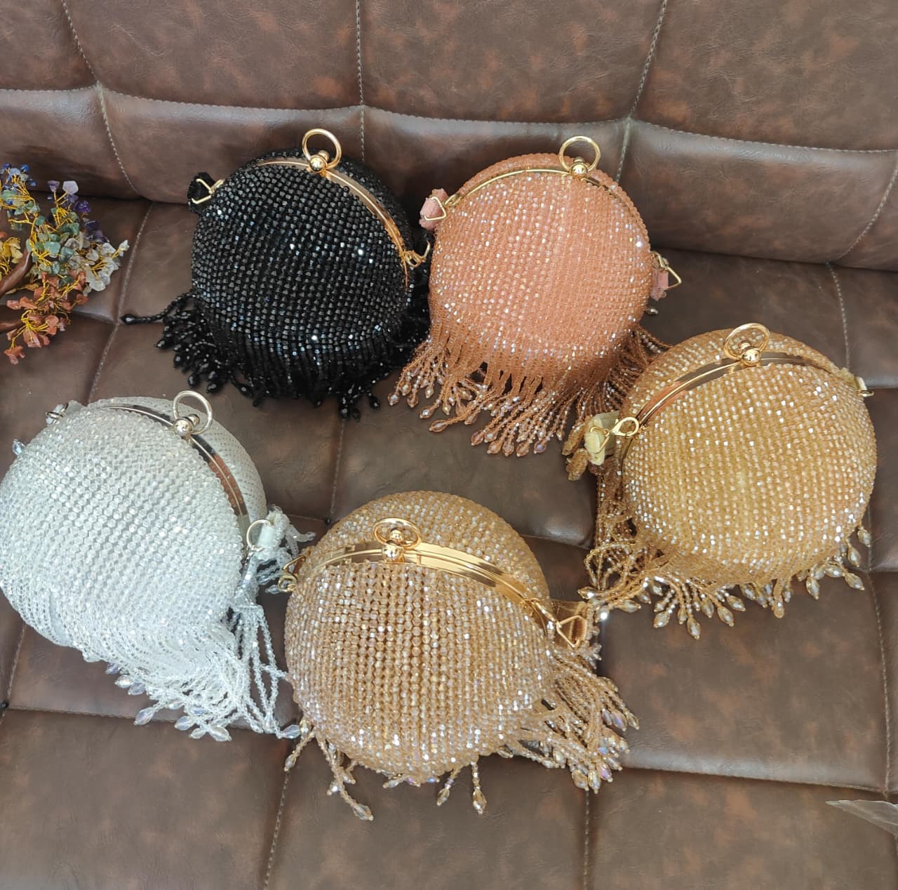Experience timeless luxury with the Golden Shade Premium Crystal Ball Bucket Bag Clutch for Women. Meticulously crafted with a radiant golden finish and adorned with delicate crystal accents, this clutch blends opulence with practicality. Its bucket design offers ample space for essentials while maintaining an elegant profile, making it the perfect accessory to enhance formal or evening ensembles with a sophisticated glow.