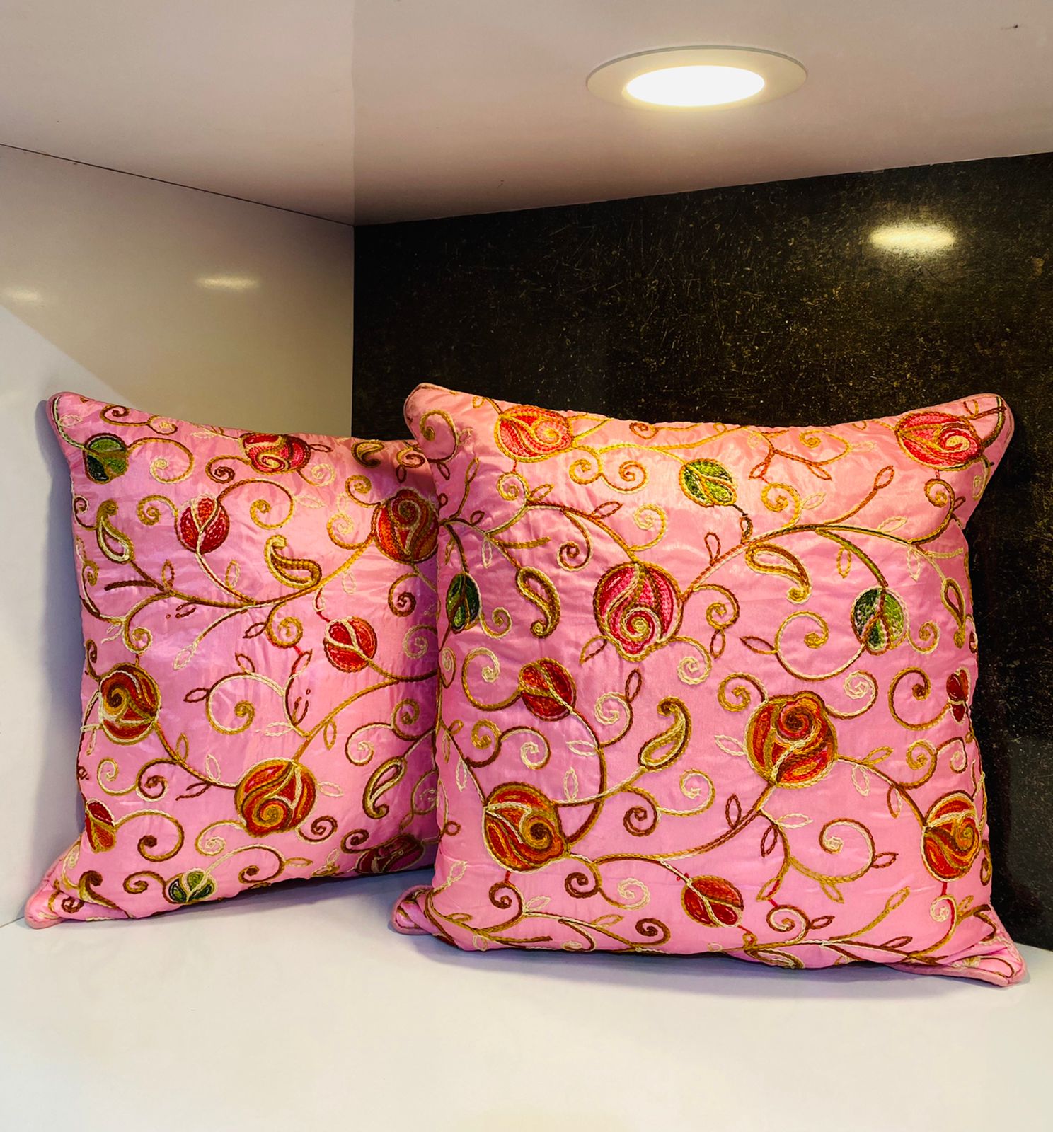 PINK Beautiful Thread Work Designer Cushions Cover Set-PREET001CCP