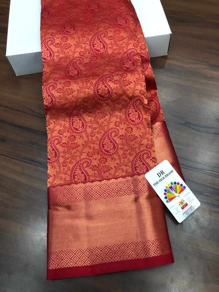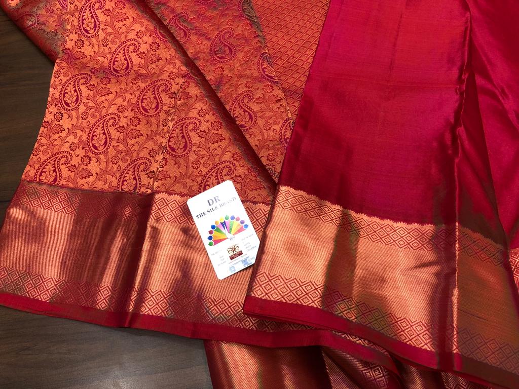 KANCHANA, PURE KANCHEEPURAM HANDLOOM PATTU SILK SAREE WITH BEAUTIFUL ZARI BORDER WITH RICH PALLU AND BLOUSE-PDS001KSB