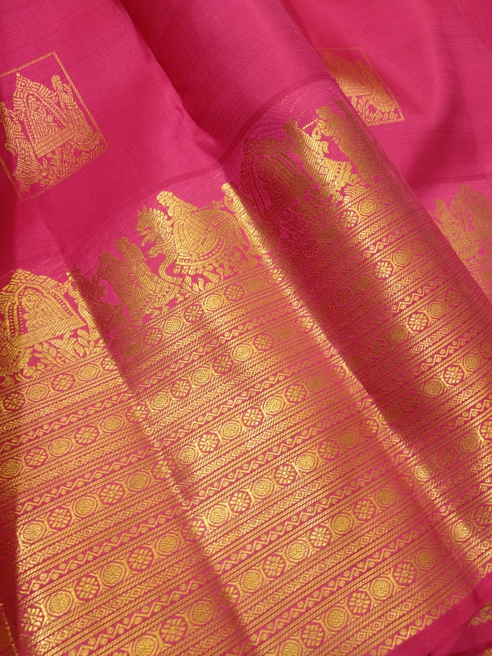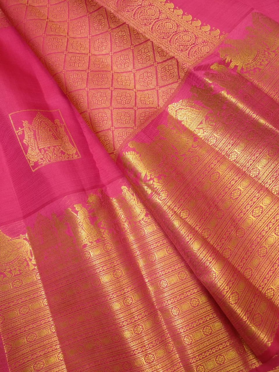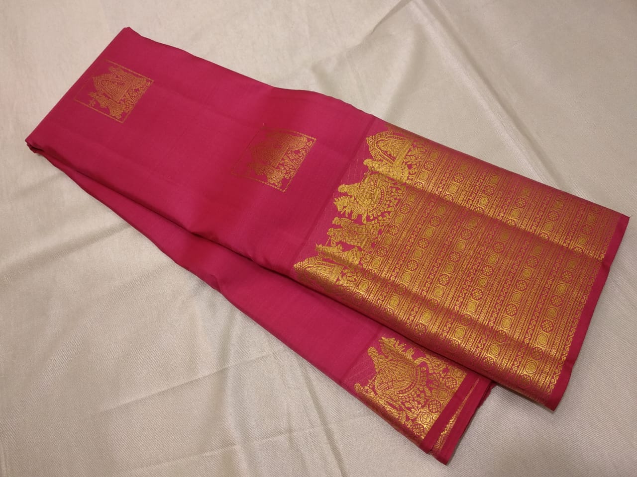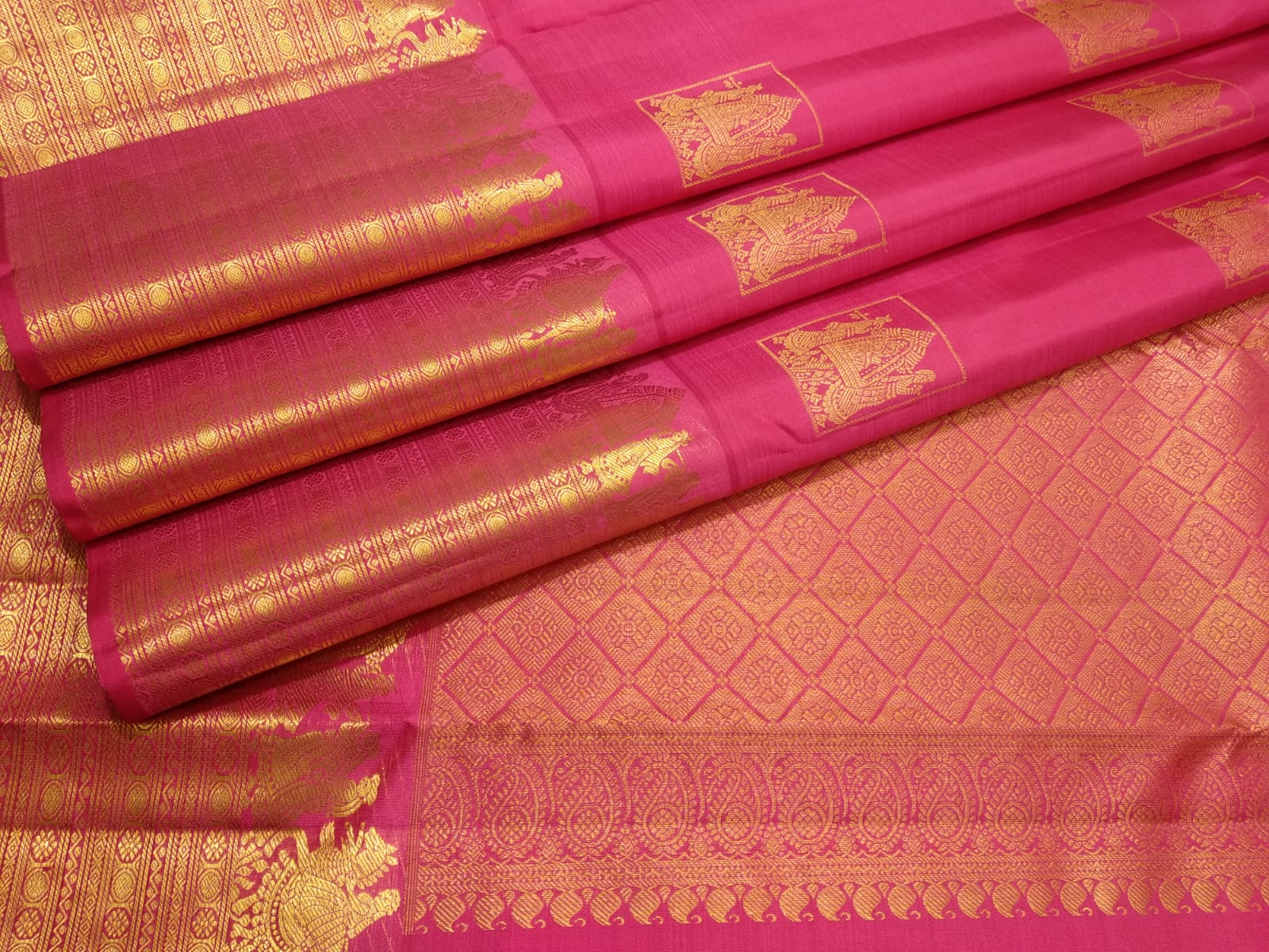 Gajri Pink Kanjivaram Silks in Classical colour combination with Golden Zari -SACH001GP