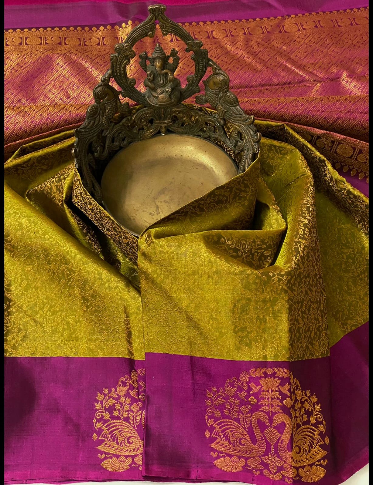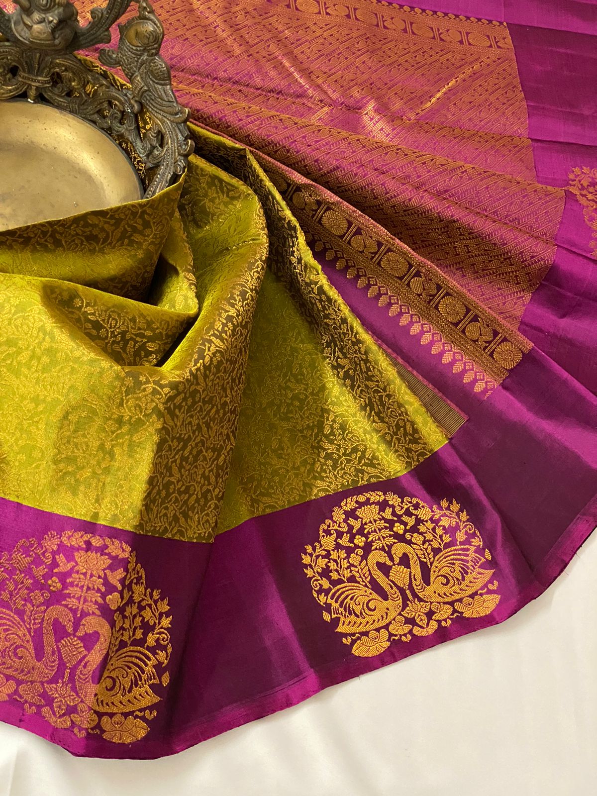 Suhasini , Golden Yellow and Pink Shade Pure Kanjivaram Silk Saree for Women-PIY001PKS