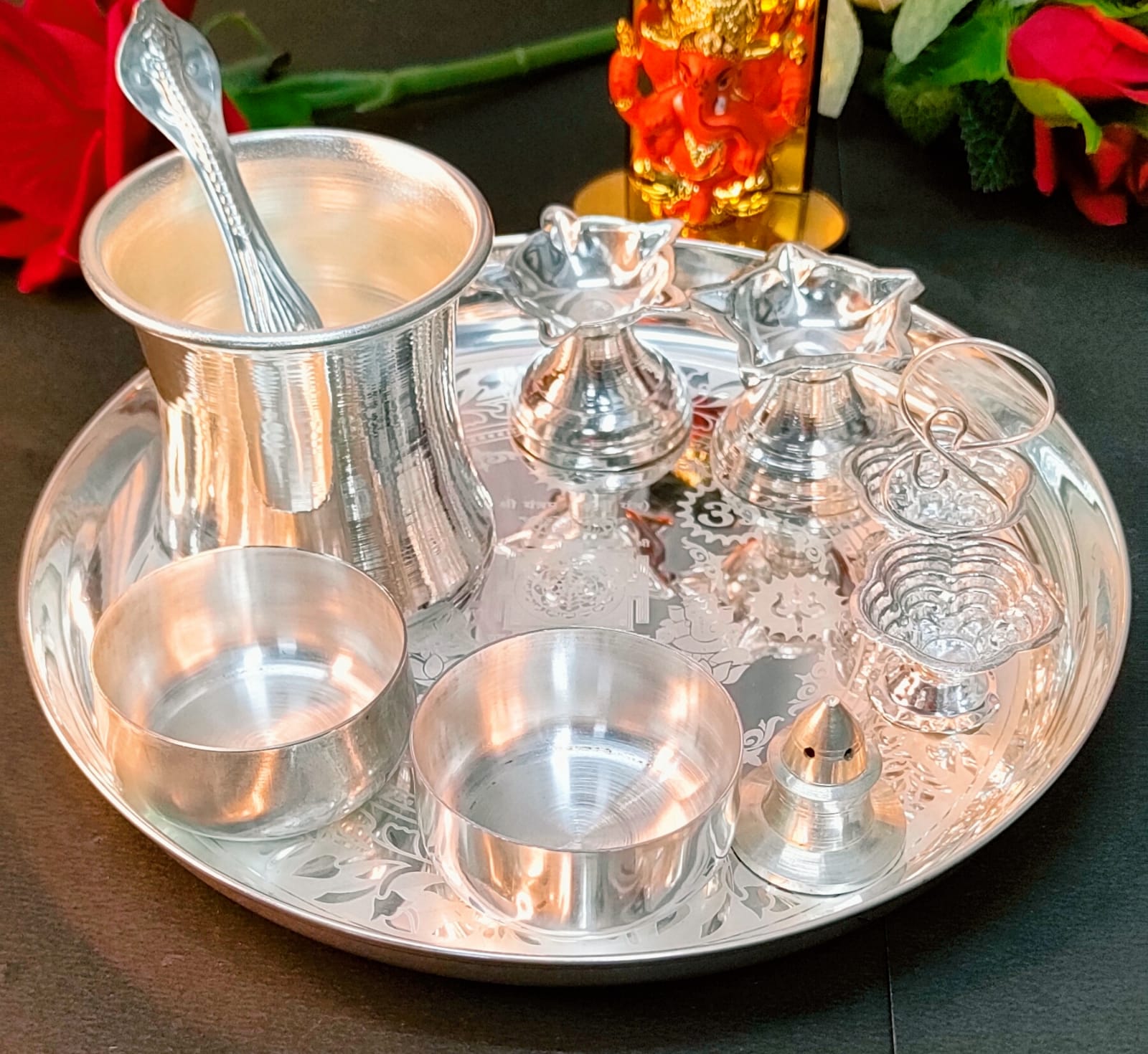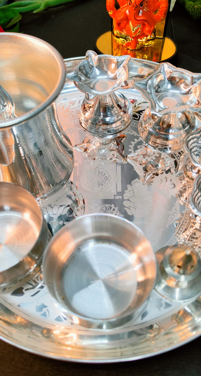 SURABHI GERMAN SILVER POOJA THALI SET -SKDPTS001S