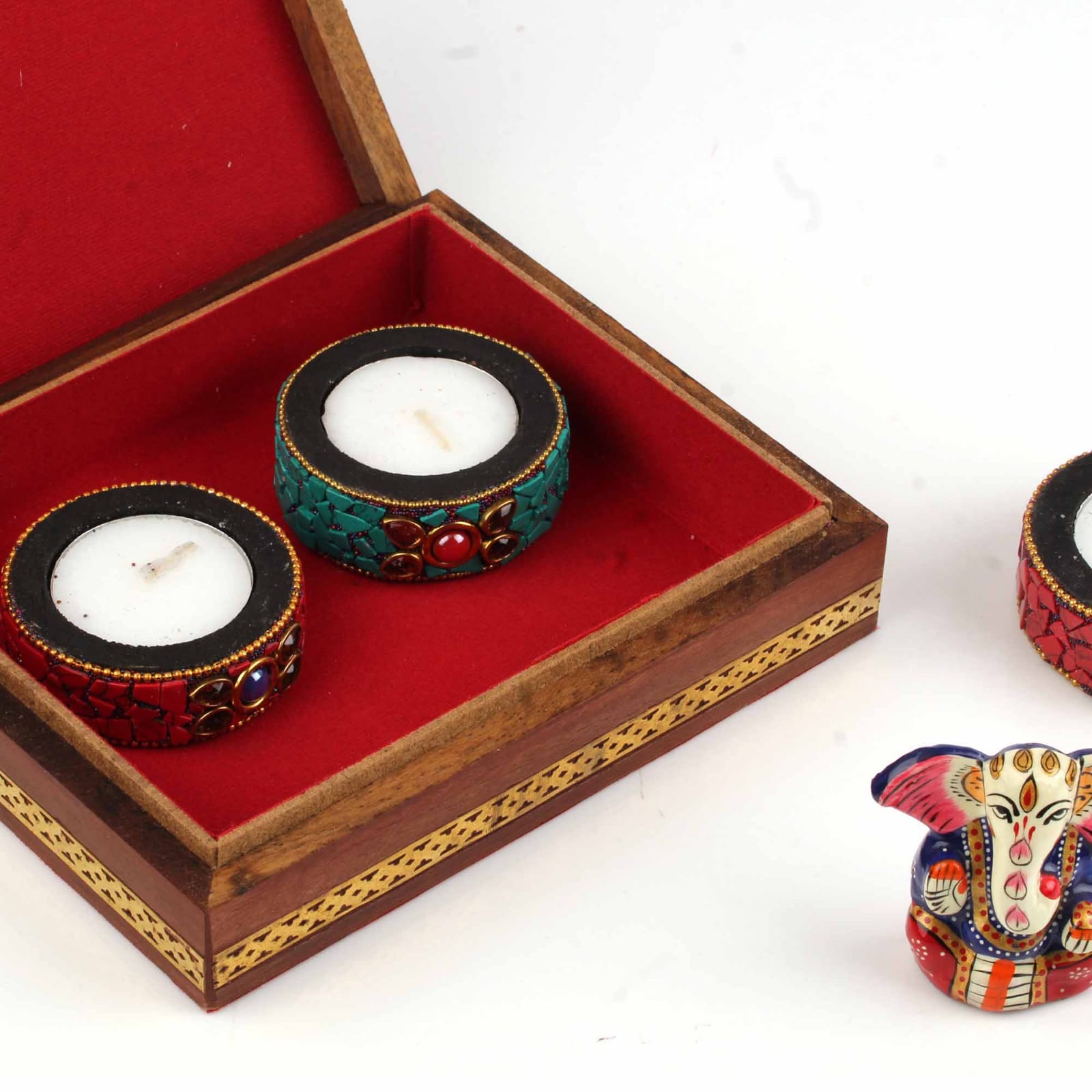 SURBHI , SPECIAL DIWALI GIFT BOX WITH LORD GANESHA AND HANDMADE CHANDLES-SKDGBC001