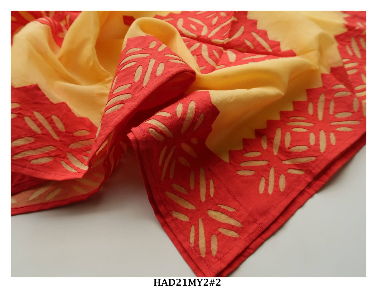 YELLOW AND RED COLOR HAND APPLIQUE COTTON DUPPATTA FOR WOMEN-KIADW001YR