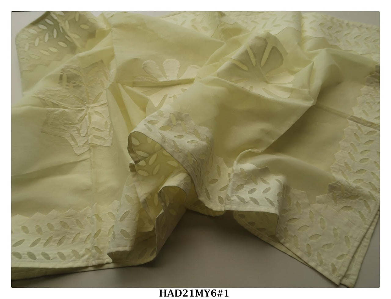 PASTEL YELLOW COLOR HAND APPLIQUE COTTON DUPPATTA FOR WOMEN-KIADW001PY