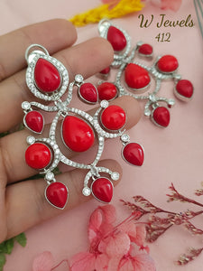 Hesperus , Elegant Platinum Finish Earrings with Coral Red Colored Stones -SONA001CR