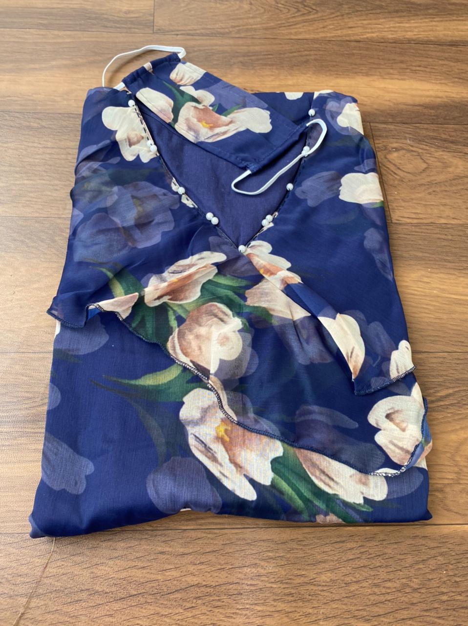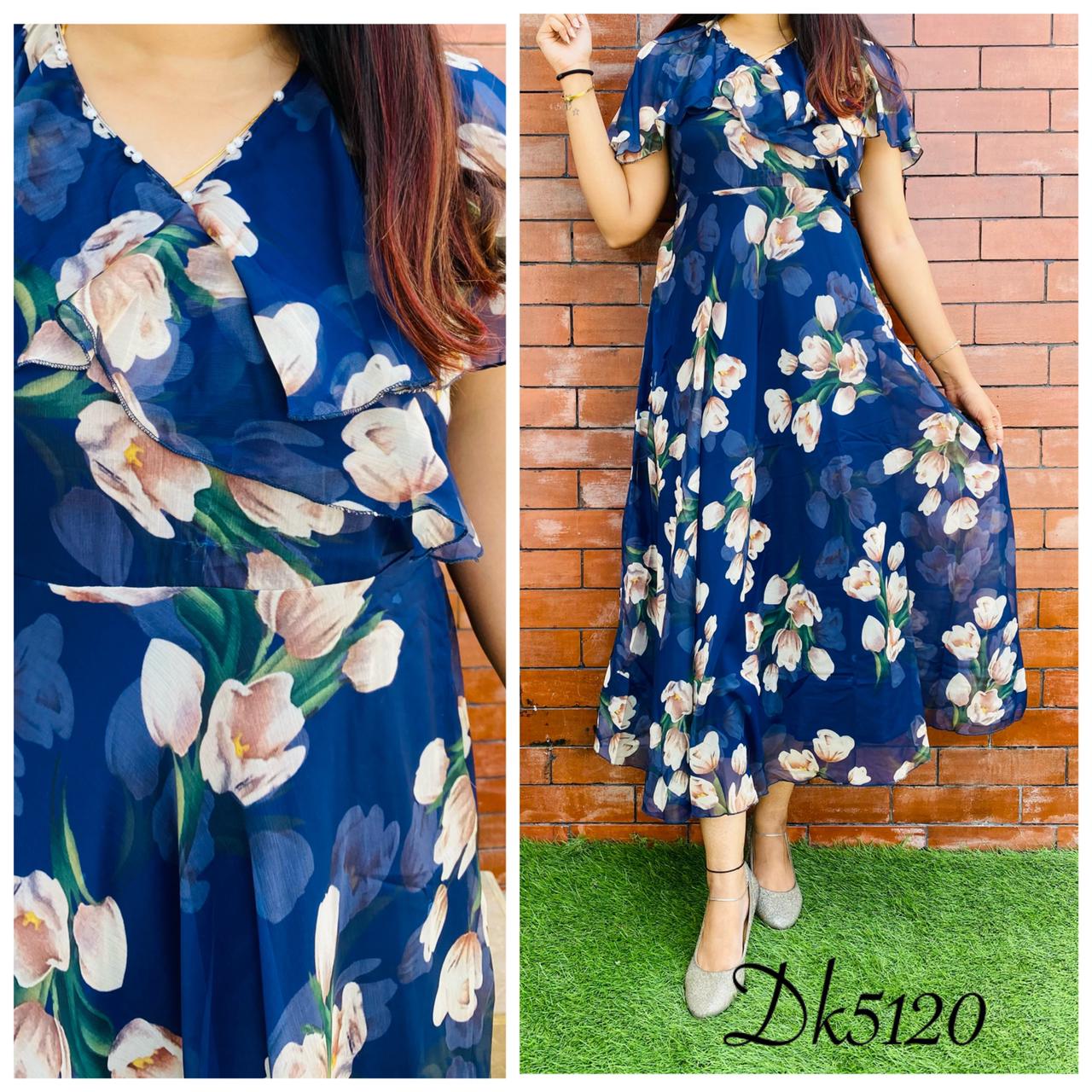 Premium chiffon floral printed frocks with bell sleeves, lining inside and belt for proper fitting-GANNK001