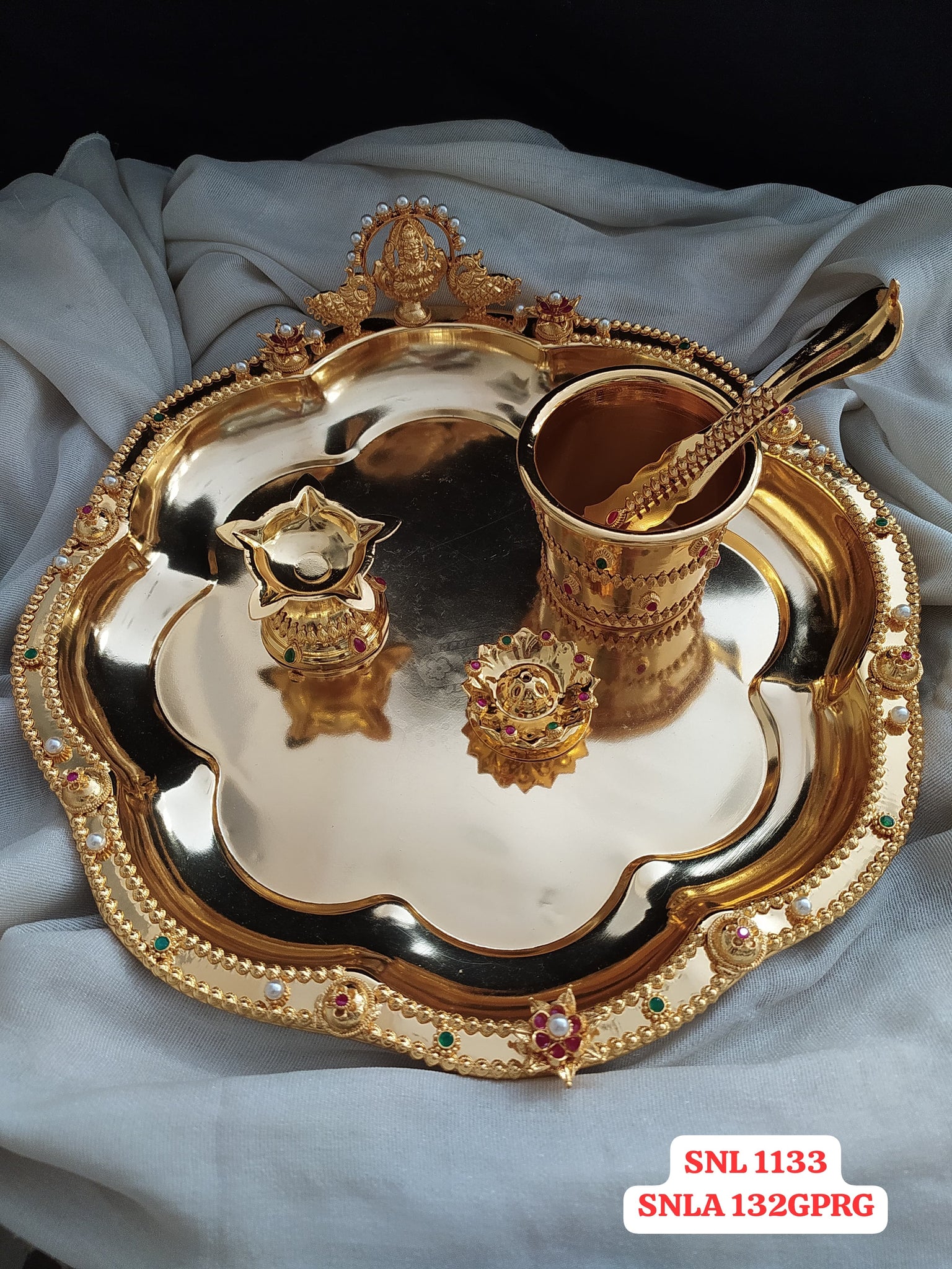 Ambika , elegant Gold Plated Thali Set for Puja / Festivals-SONA001PT