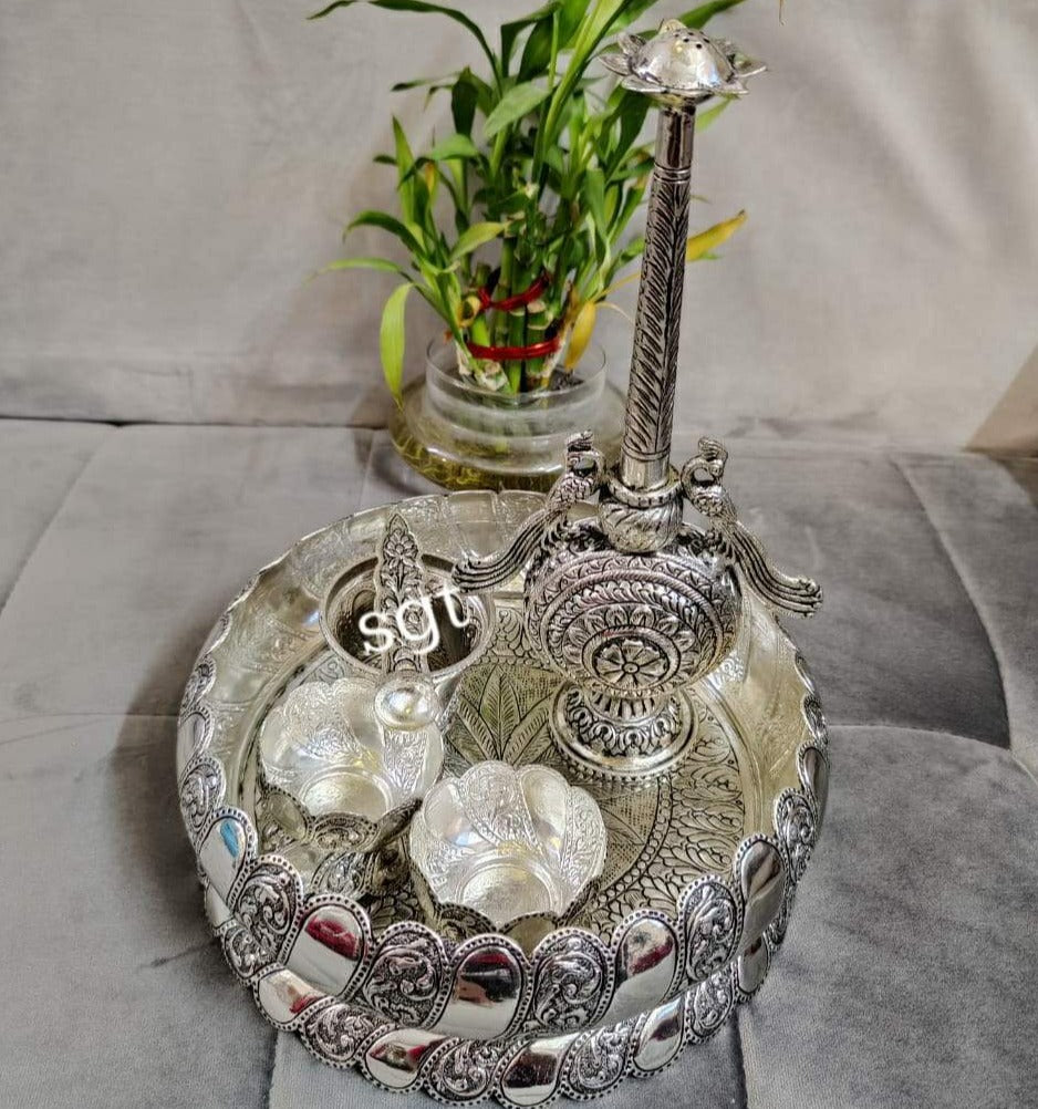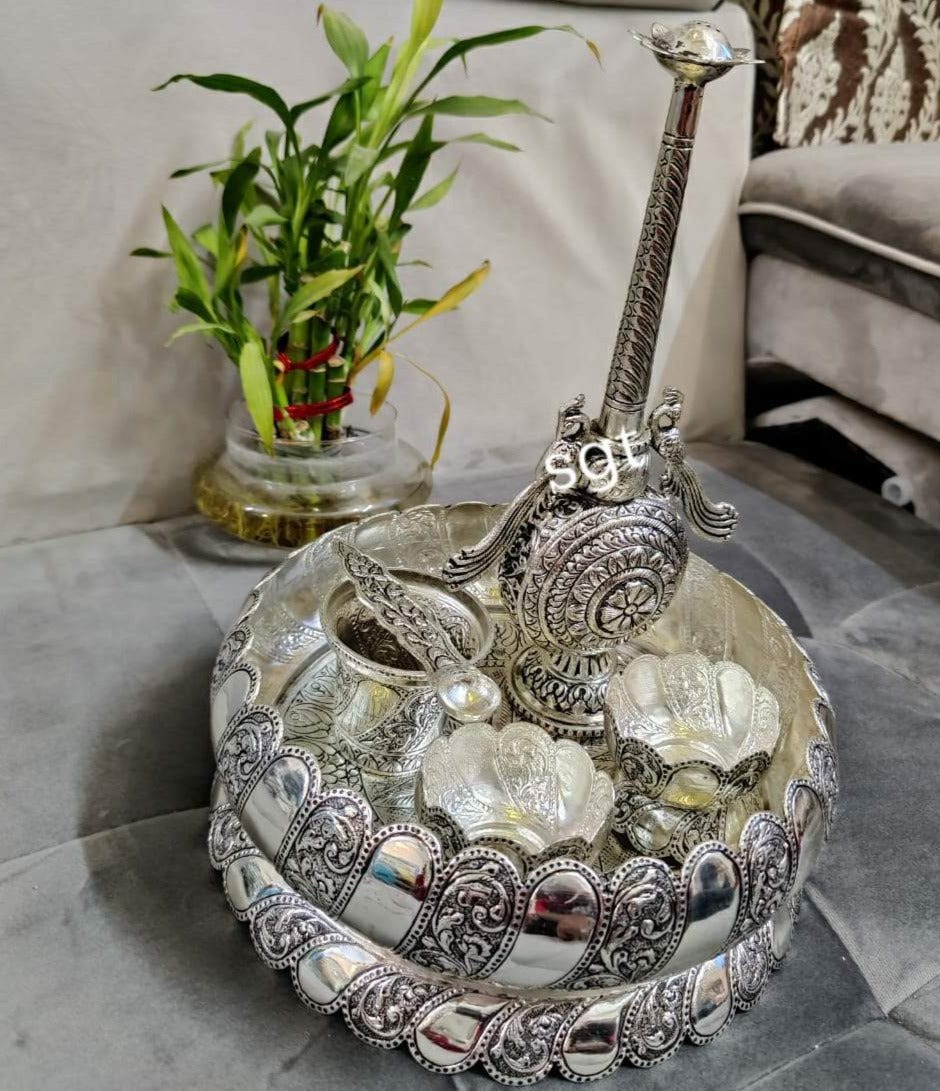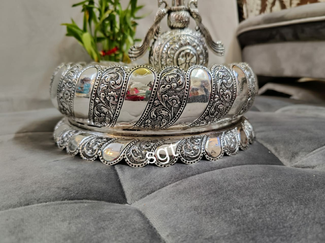 SILVER LOTUS , ANTIQUE FINISH HAND CRAFTED GERMAN SILVER URLI SET -SNSLUS001