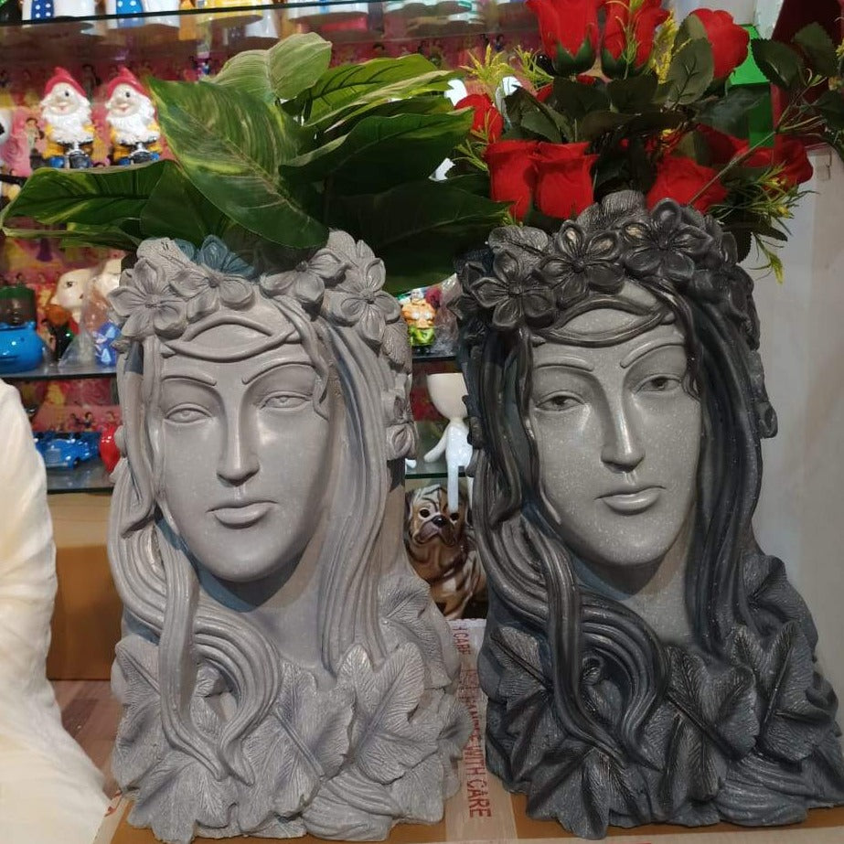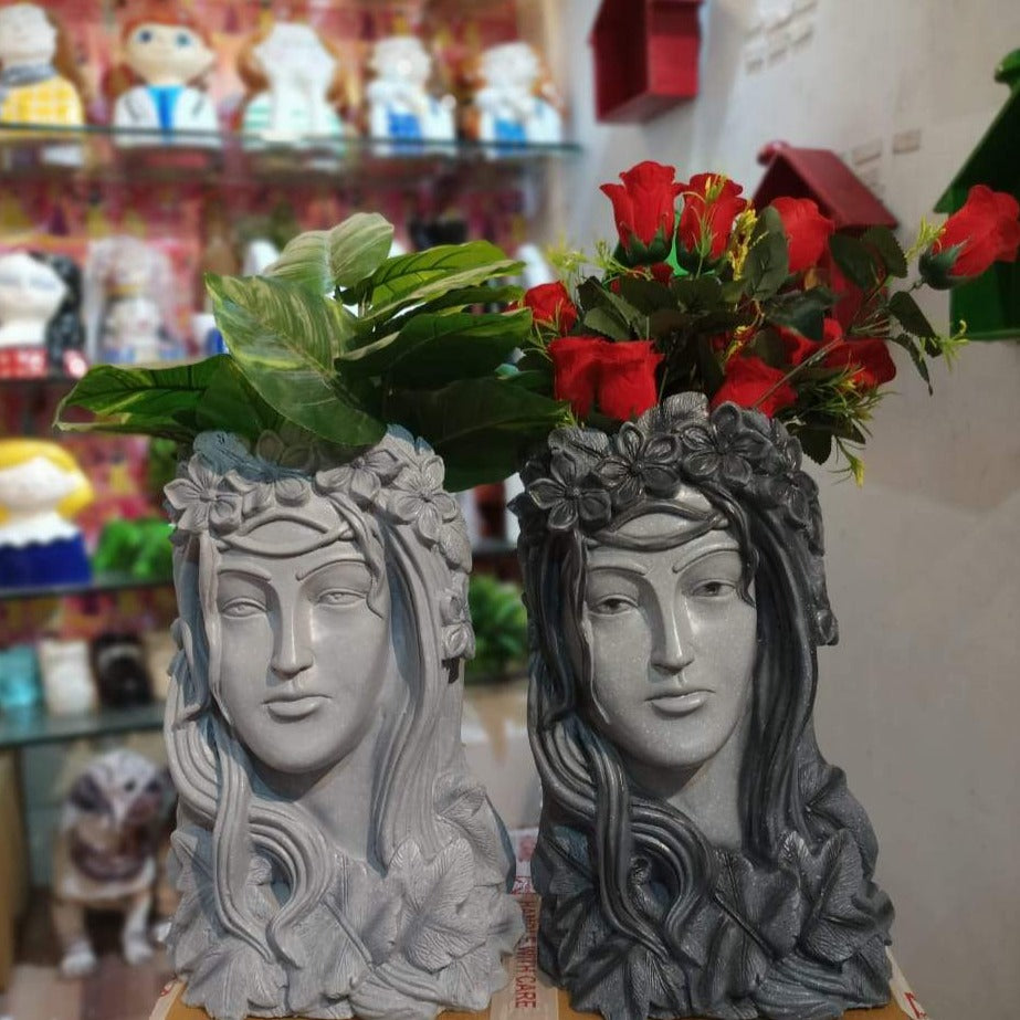 Set of 2,Lady Roman Face Planters for Garden Decor-PPAD001