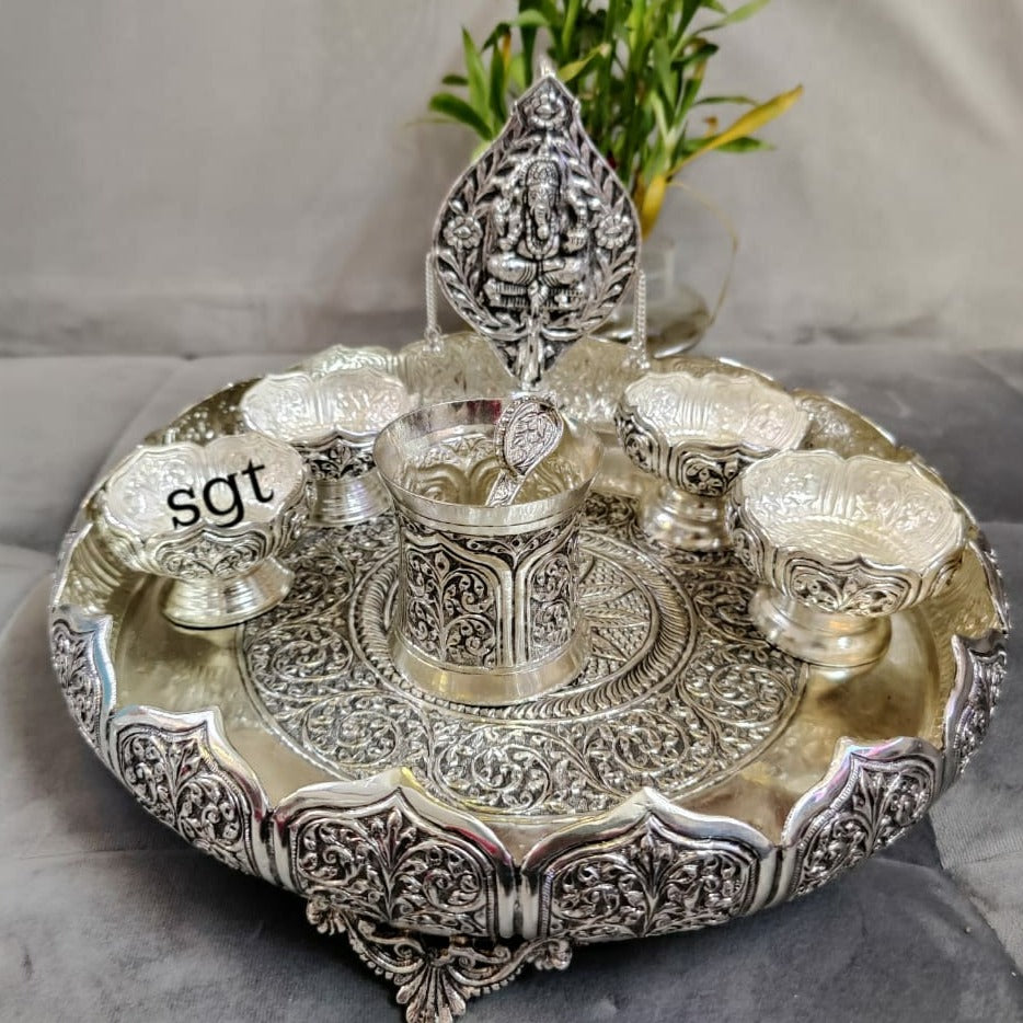 GANEHSA JAYAM, ANTIQUE FINISH GERMAN SILVER URLI SET WITH GANESHA DIYA-SNUSGD001