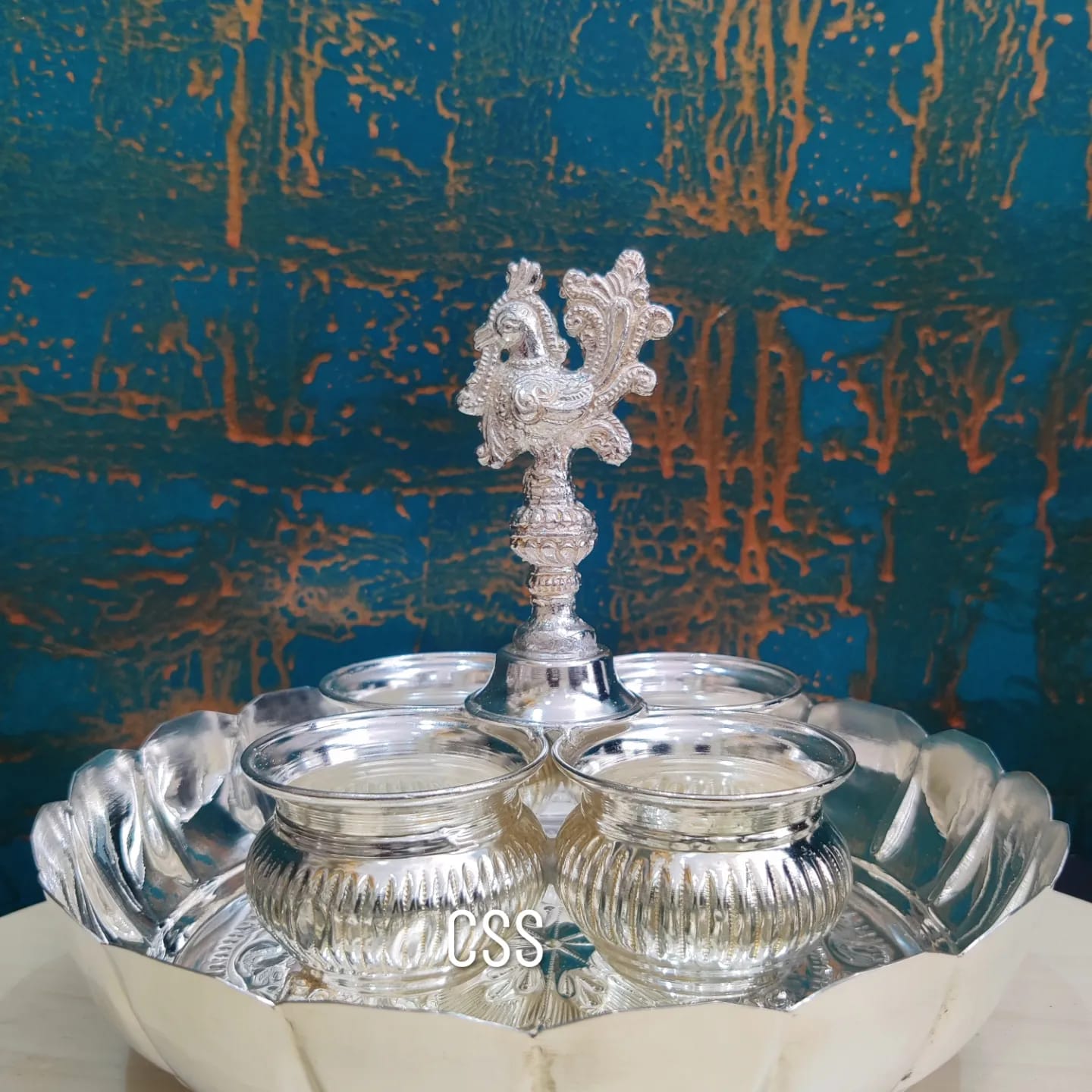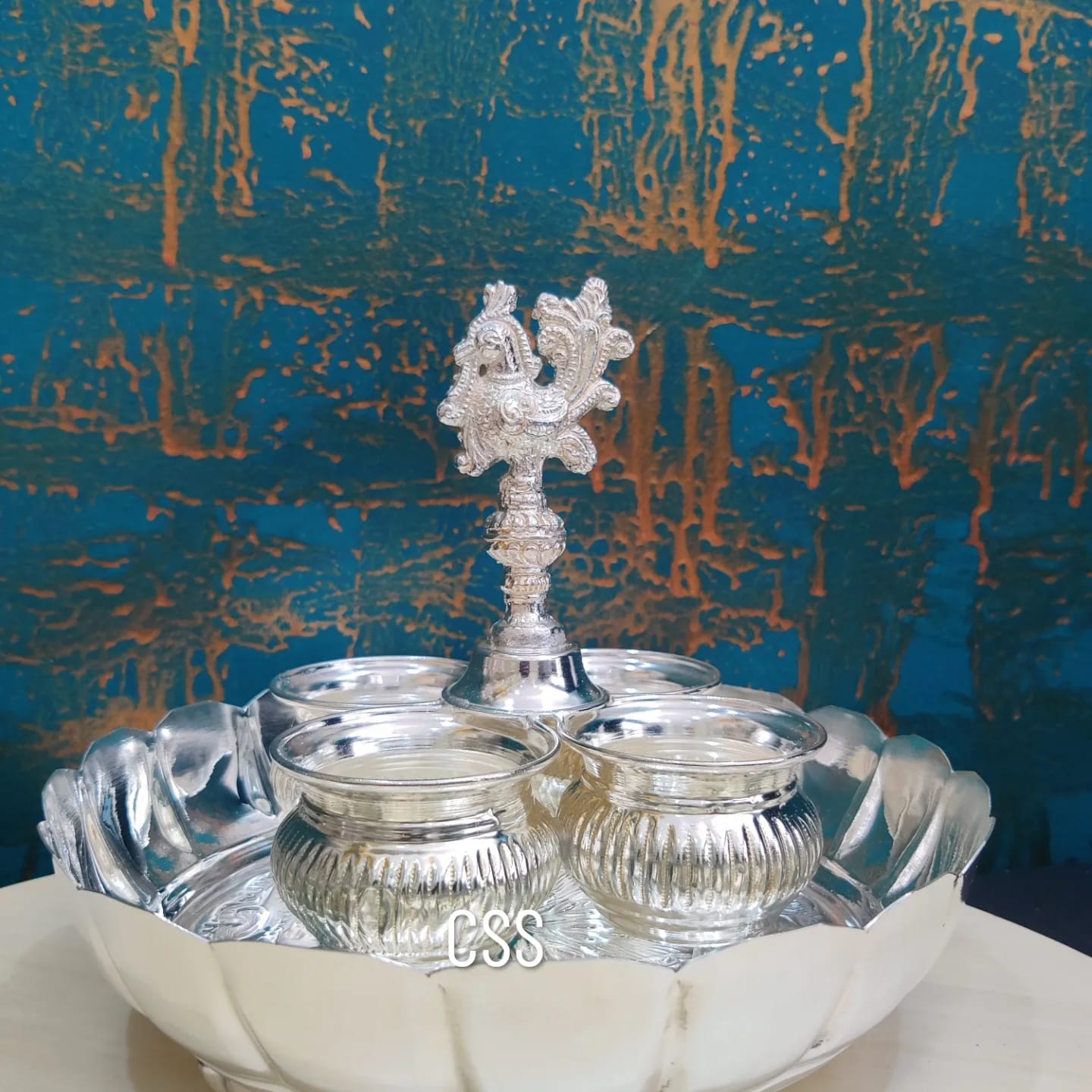 Silver Finish Lotus Mangala Harathi Plate with Peacock Panchwala -CZY001HPC