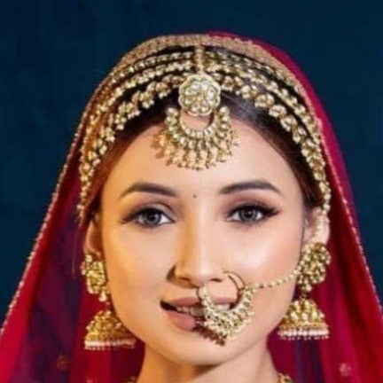 Gold Finish Kundan Bridal Heavy Maangikka for Women-