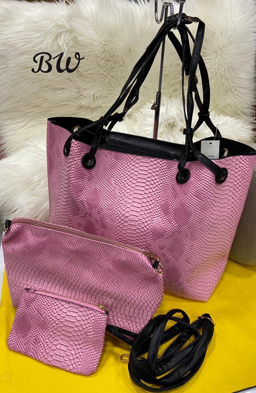CROCO LEATHER FINISH THREE PEICE HAND BAG COMBO WITH PREMIUM AND CLASSY CROCO LOOK WITH LONG BELT -SHARA001CF